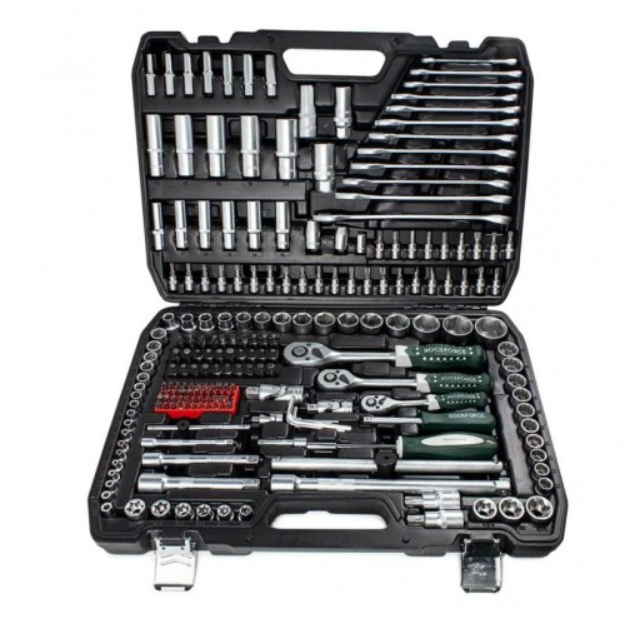 Този висококачествен комплект от 216 части на марката RockForce е създаден да предостави изключителна надеждност и дълготрайност при всякакъв вид механични работи. Комплектът включва разнообразие от инструменти, които са изработени от висококачествена стомана, устойчива на тежки натоварвания. Той е подходящ за професионални и аматьорски ремонти и дейности.