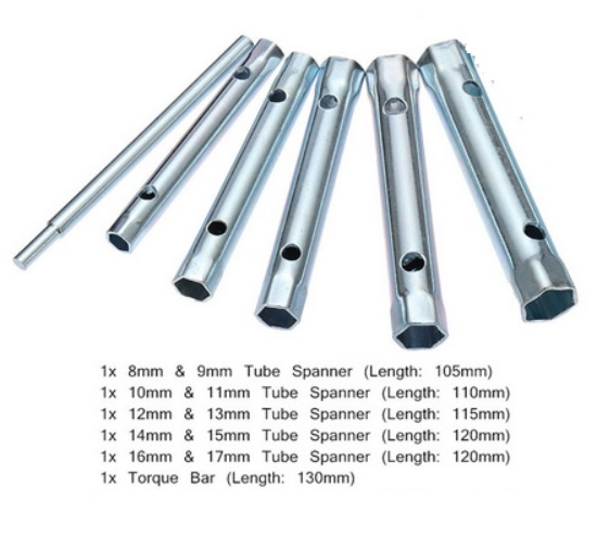 Размери: Комплектът съдържа 6 глухи ключета с различни размери, вариращи от 8 см до 17 см, което ги прави подходящи за различни приложения в автосервизи, ремонтни работилници и за домашни майстори.