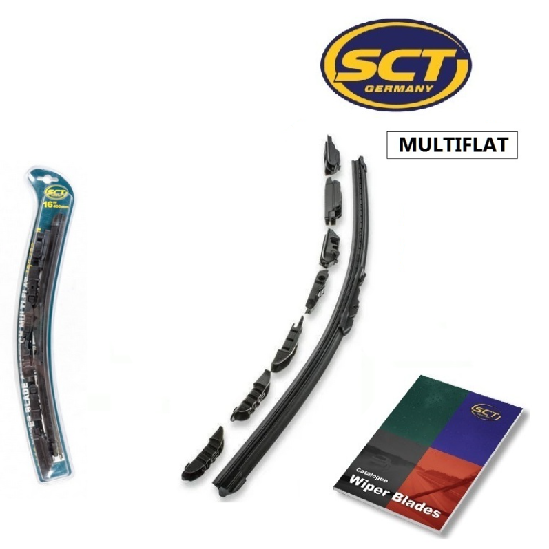 SCT Multi Flat 9462 е универсална безрамкова чистачка с дължина 16 инча (400 мм), предназначена за ефективно почистване на автомобилното стъкло при всякакви метеорологични условия. Благодарение на включените 7 адаптора, тя е съвместима с широка гама превозни средства, осигурявайки плътно прилепване и тиха работа.