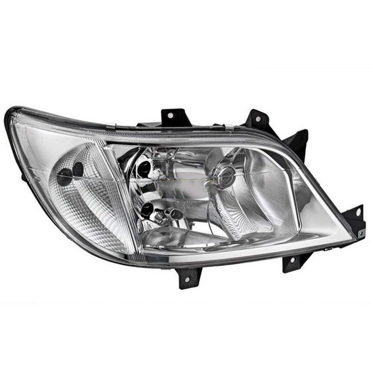Този фар е предназначен за Mercedes-Benz Sprinter, осигуряващ надеждно осветление и безопасност при шофиране, като е оборудван с основни крушки H3 и 2 x H7. Фарът е с ръчно регулиране и светлини за мъгла, предлагащи допълнителна видимост при лоши метеорологични условия. Вътрешността на фара е хромирана, а фарът не е оборудван с моторче за регулиране.
