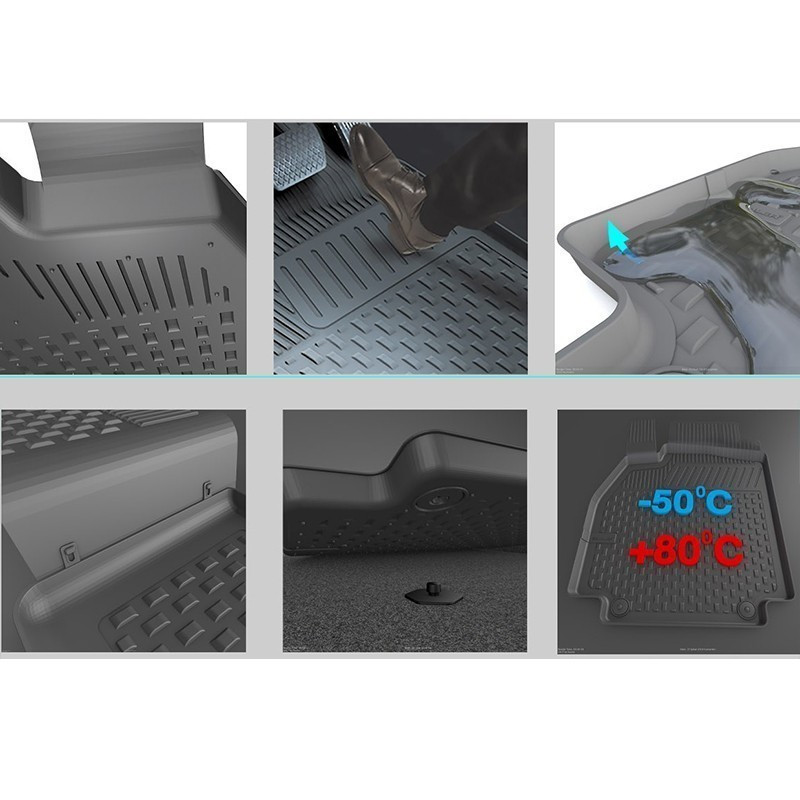 - Ново поколение 4D гумени стелки: С иновативна конструкция, която осигурява перфектно пасване и защита на пода на автомобила.