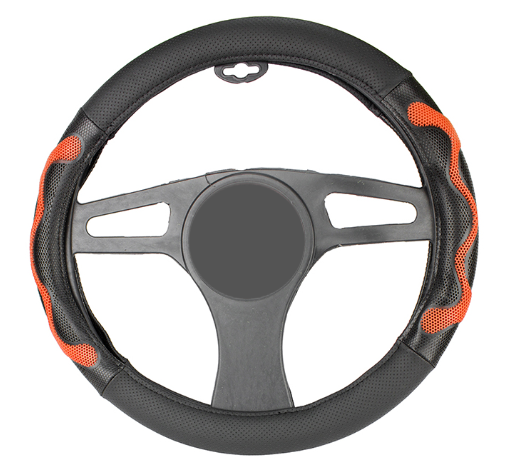 Добавете динамичен и стилен акцент към интериора на вашия автомобил с този калъф за волан, комбиниращ черен цвят с атрактивни 3D оранжеви ленти. Със стандартен диаметър от 38 см, той е универсален и съвместим с повечето модели автомобили.