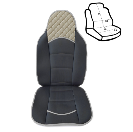Изработени от ЕКО кожа и здрав плат ЛАКОСТА, с вътрешна подплата от 3 мм дунапрен, калъфите осигуряват удобство при дълги пътувания и ефективно предпазват седалките от износване и замърсяване. Горната част е в стил „масажор“, която придава допълнителна опора и комфорт на гърба по време на шофиране.
