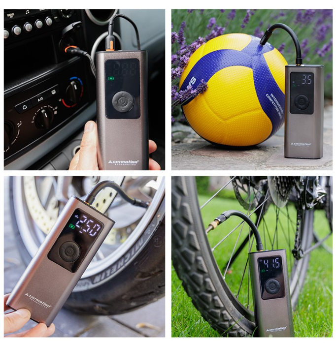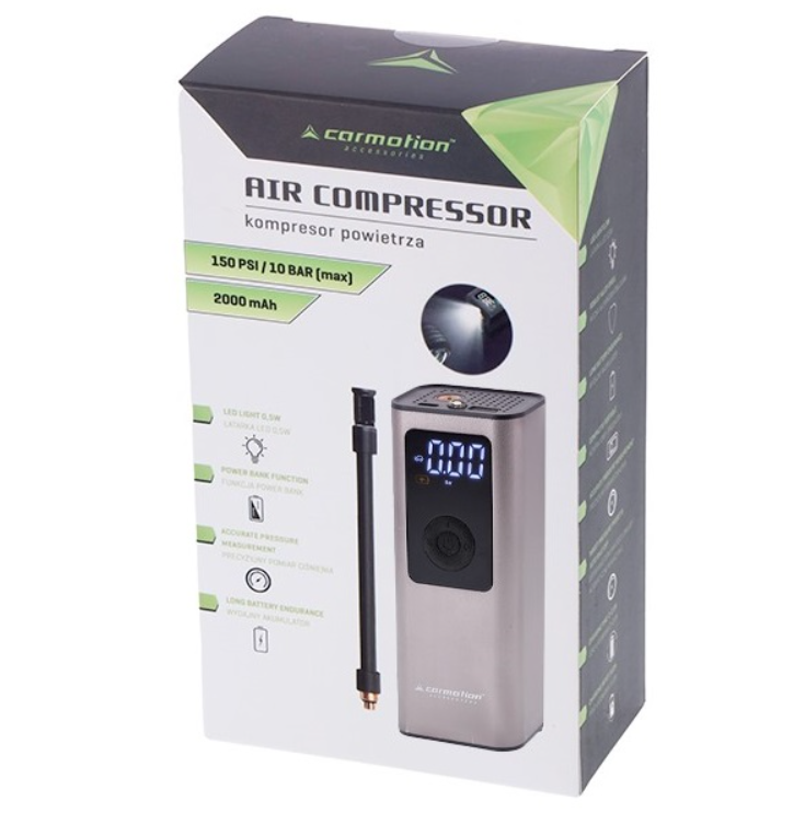 Компактен и преносим електронен компресор, подходящ за автомобили, мотоциклети, велосипеди, топки и други надуваеми предмети. Модел Carmotion Poland 63330 предлага удобство и прецизност при поддържане на налягането, благодарение на модерните си функции и здравата конструкция.