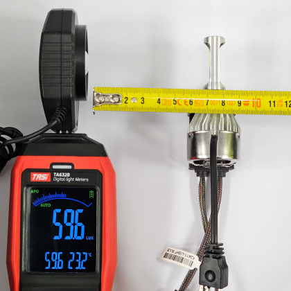 Сила на светене: 30 800 лукса измерени на 7см. от източника на крушката (за сравнение на халогенна крушка, измерената сила на 7см. от източника е 10700 лукса, което е близо 3 пъти повече. В снимките може да се видят реалните стойности, на двата вида крушки измерени с луксомер модел TA632B, измерващ максимум до 200 000 лукса, като при всички стойности измерени над 99 999 лукса на дисплеят се появява индикатор "х10", което означава че ако имаме измерени 155 000 лукса, на диспеят ще се покаже 15 500 и ще светне индикатора "х10".)