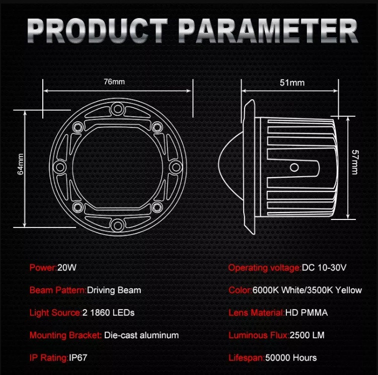 Тази LED халоген лупа за вграждане е иновативно и високоефективно решение за осветяване на пътя при нощно шофиране, офроуд, мъгла или работа в трудни условия. Съчетава мощната LED технология с практичен и естетичен дизайн за вграждане, което я прави отличен избор за автомобили, джипове, камиони, мотори и други превозни средства.