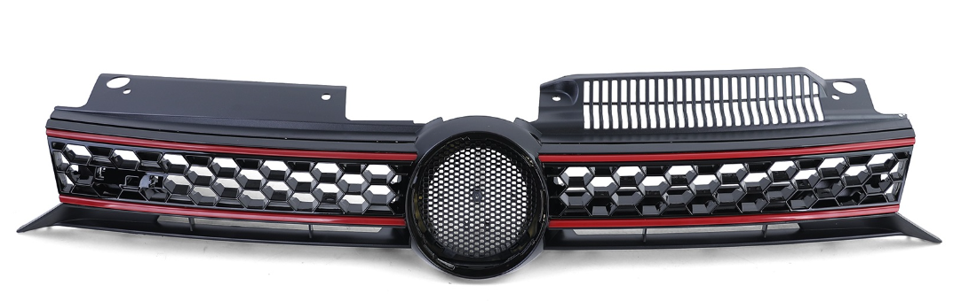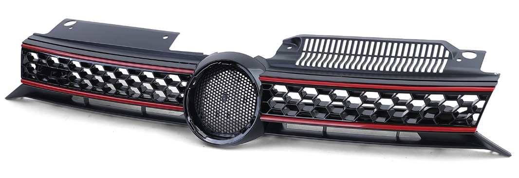 Освежете предната част на вашия VW Golf 6 GTI с тази тунинг решетка, създадена специално за моделите от 2008 до 2012 година. Съчетание от OEM прилягане и агресивен спортен дизайн, решетката придава модерен и динамичен облик, вдъхновен от оригиналния GTI стил – с пчелна структура и подчертани червени акценти (по избор).