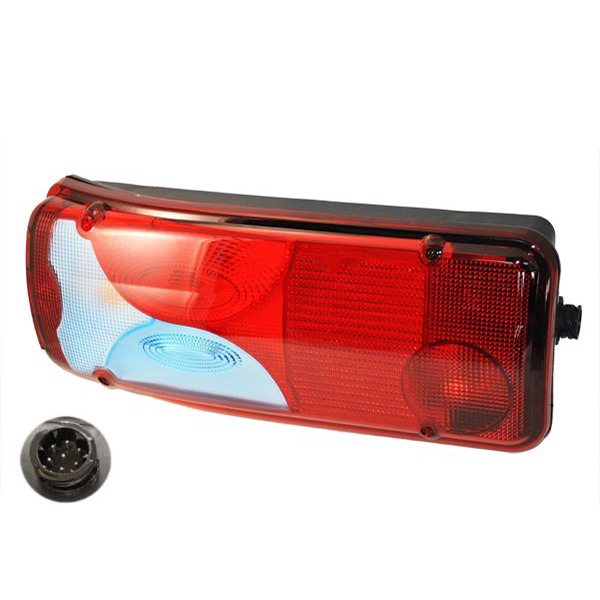 Този ляв стоп с син мигач е предназначен за монтаж отзад на превозни средства Man (модели TGA, TGL, TGM, TGX). Работи при волтаж 24.0 V и има червено/синьо стъкло с фасунга за лесен монтаж.