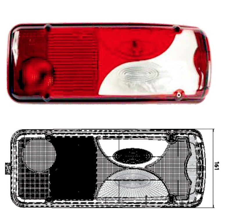 - Предназначение: Десен стоп за камиони MAN TGA, осигуряващ ефективна сигнализация за спиране и безопасност на пътя.