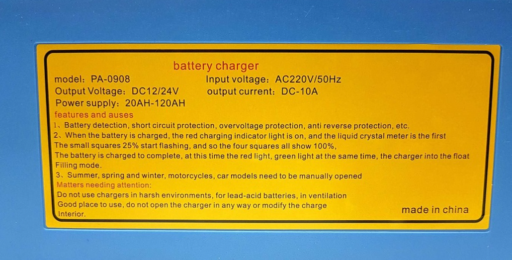 Защита срещу обръщане на поляритета: За осигуряване на безопасността, зарядното разполага с защита срещу обръщане на поляритета, която предотвратява повреди при неправилно свързване на клемите.